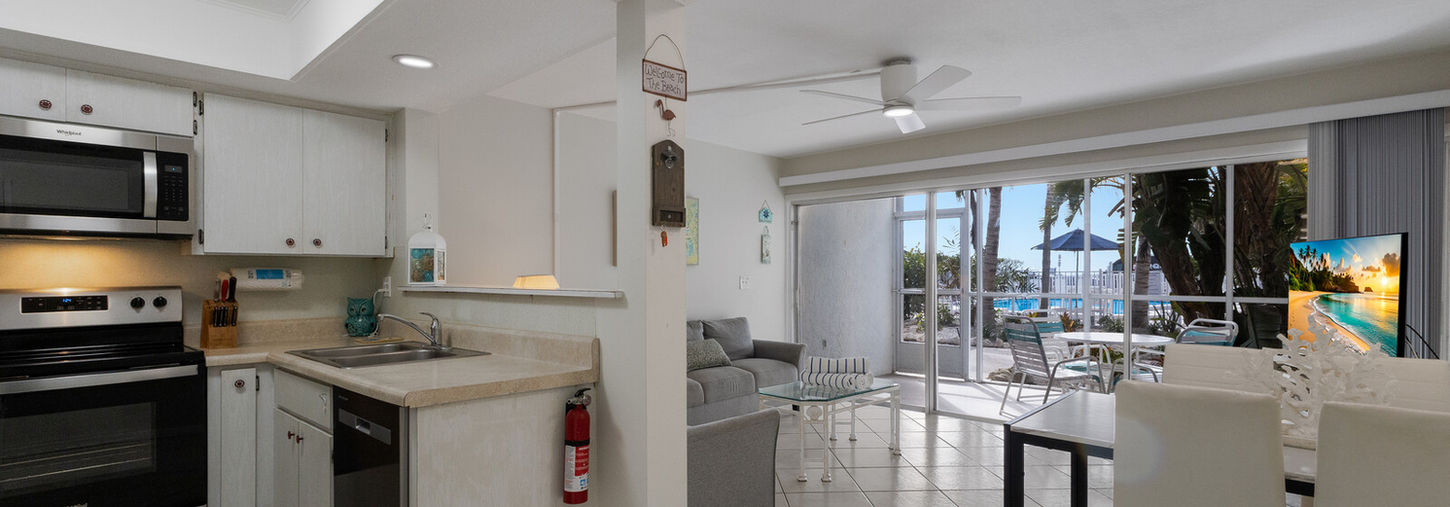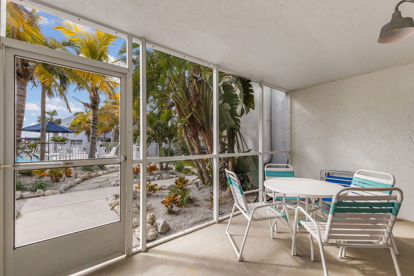 At Coconuts you will enjoy the Florida beach cottage experience with authentic island vibes. Relax by the pool or wander right out your door down to the shoreline. This unit features your own private, screened-in lanai! There are plenty of beach loungers to relax in as well as a dining table for 4 on your spacious lanai. You won't want to miss the amazing panoramic Gulf of Mexico sunsets. At night the sound of Gulf waves crashing will lull you into a peaceful sleep.