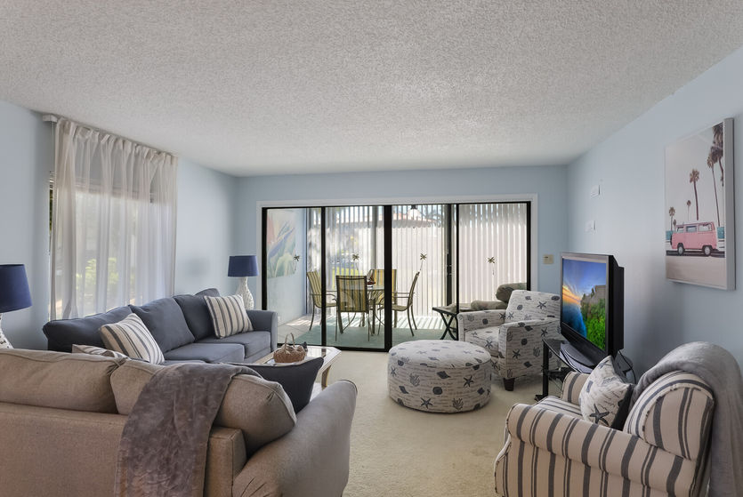 Welcome to Westbay 203 at Westbay Point & Moorings! Make yourself at home at this beautiful 2 bedroom, 2 bathroom canal front condo! This top-notch home is beautifully decorated and has all the feels of the old Florida lifestyle and charm. Inside you will find a cozy main living space that consists of a kitchen with brand new stainless steel full-size appliances, a dining area that seats four and a breakfast bar with additional seating. Your living room sliding glass doors open up to the large Florida room with dining table and the perfect place to read a good book with water views. Curl up after a long day of frolicking at the beach and watch your favorite show on the large flat-screen TV. Or maybe take a well-deserved nap in the Master Bedroom on your super plush, pillow-topped king size bed! This condo has two bedrooms and two full bathrooms. We provide all of your beach essentials including, chairs, umbrella, towels, and beach cart. There is also a washer and dryer located in your unit.